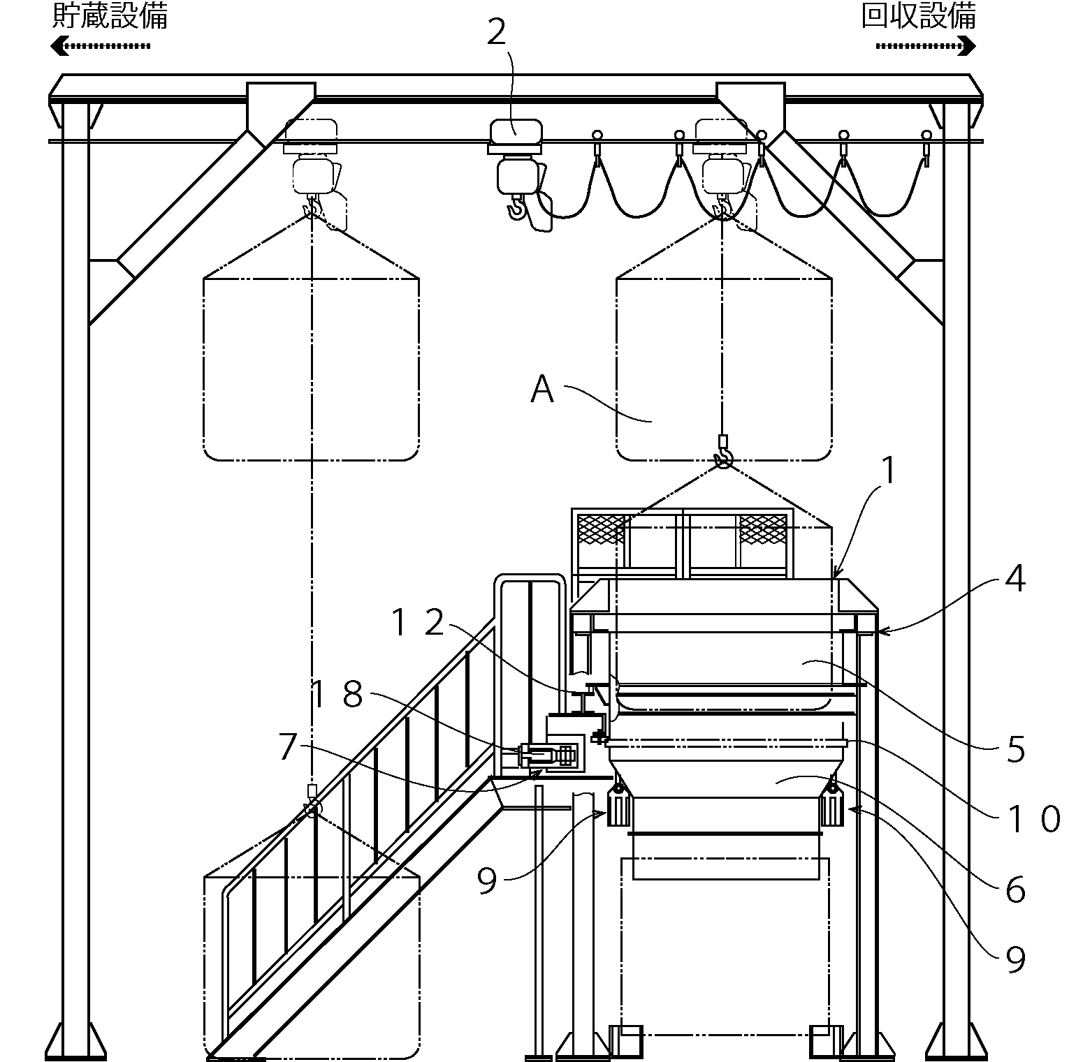 1 保持枠,2 吊り手段,3 切断部,4 基台,